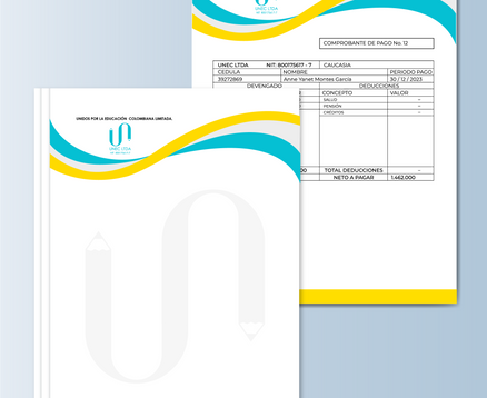 Diseño de material corporativo para la cooperativa educativa UNEC creando documentos funcionales para sus operaciones laborales.